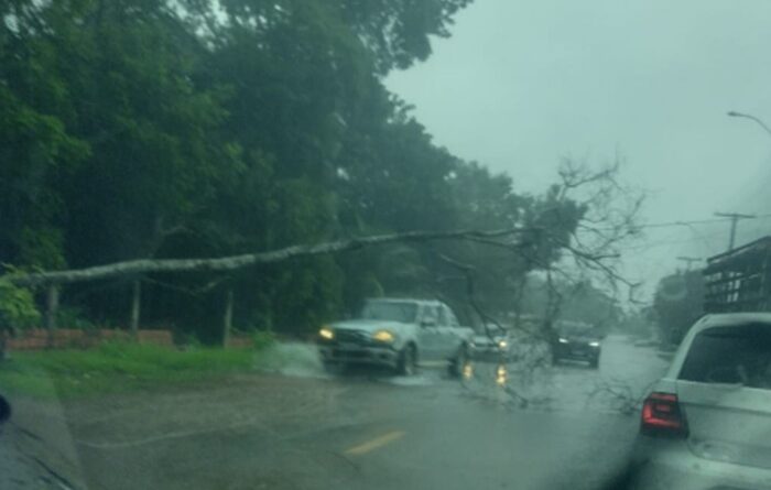 Chuva intensa derruba árvores, causa alagamentos e bloqueia vias em Macapá