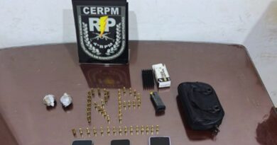 Violência doméstica termina com apreensão de munições e drogas em Santana