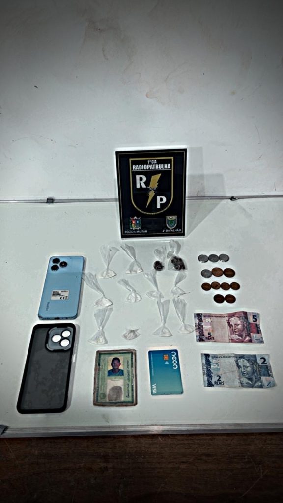 Durante patrulhamento na Rua Mesopotâmia, no bairro Renascer II, em Macapá, a Polícia Militar deteve Leonardo, 26 anos, conhecido como Mudo, com porções de cocaína e maconha, dinheiro, um celular e cartões bancários. O suspeito tentou se esconder ao perceber a aproximação da viatura, entrando rapidamente em um estabelecimento comercial, mas foi abordado pela equipe […]