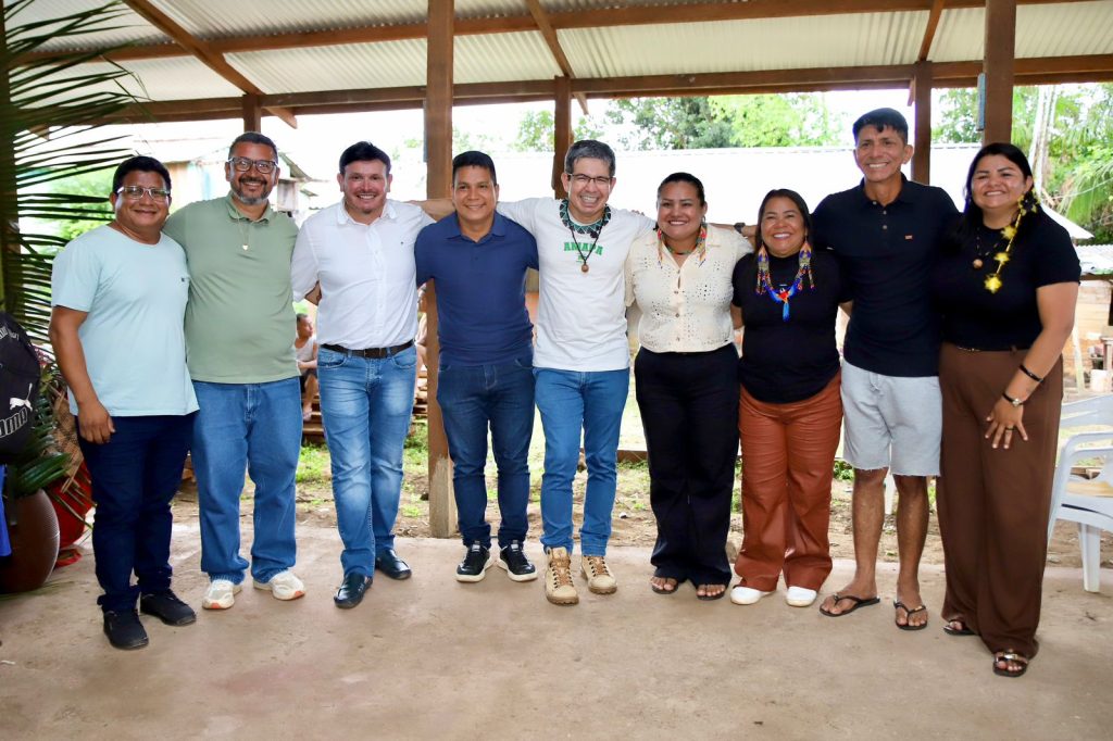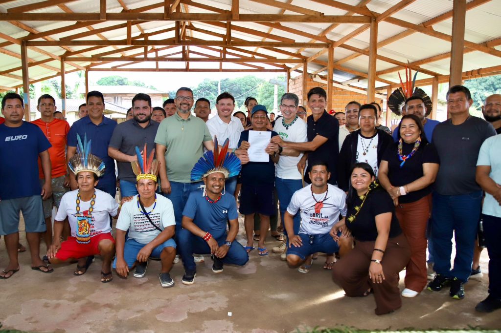 Na Aldeia do Manga, o senador se reuniu com lideranças indígenas e representantes municipais para anunciar as obras de infraestrutura viária.