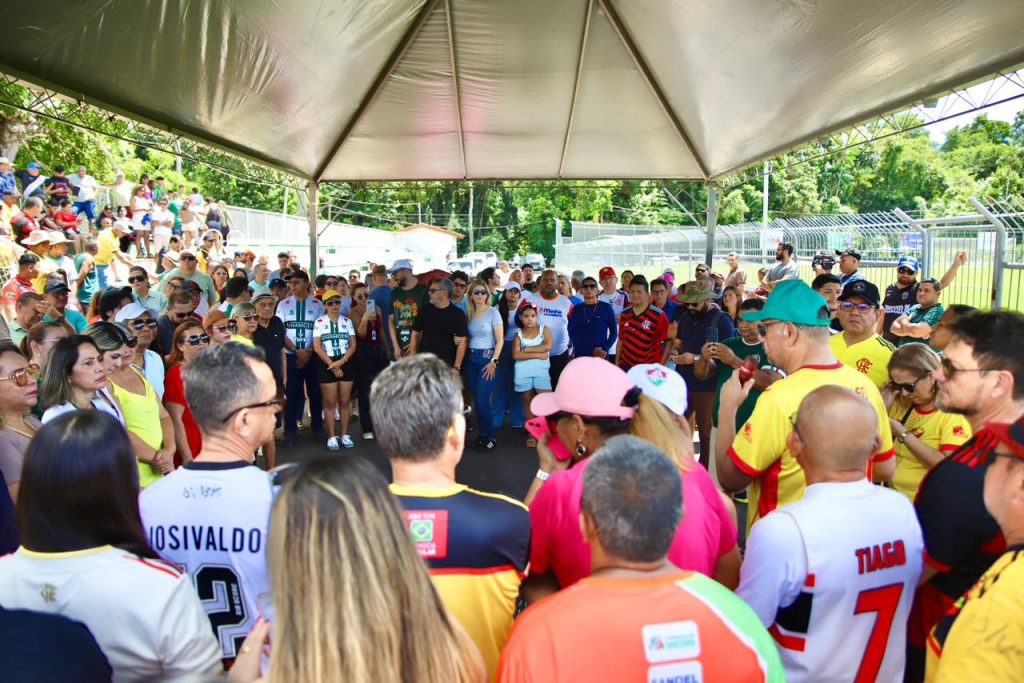 A manifestação reuniu centenas de pessoas no estádio e contou com a presença do prefeito de Santana, Bala Rocha, do deputado federal Josenildo Abranches, do deputado estadual Jory Oeiras, vereadores do município, representantes de clubes de futebol do Amapá e integrantes da bateria da escola de samba Império do Povo.