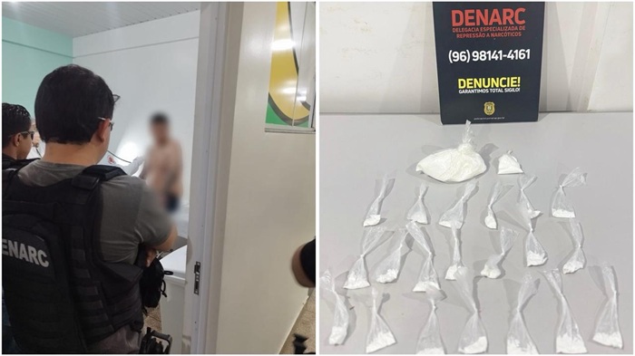 Um homem de 21 anos foi preso em flagrante na segunda-feira (9) pela Delegacia Especializada de Repressão a Narcóticos (Denarc), no bairro Marabaixo, zona oeste de Macapá. Ele é suspeito de tráfico de drogas e também foi autuado por desobediência e tentativa de homicídio contra agente de segurança pública durante a abordagem policial.